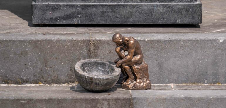 Dit standbeeld is geïnspireerd op het beeld “Le Penseur”(de Denker) van Auguste Rodin.